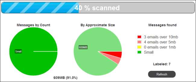 Big Mail'i Bul, Gmail hesabınızda etiketler oluşturur, böylece bir masaüstü e-posta istemcisini çalıştırmadan büyük iletilere kolayca göz atabilirsiniz.