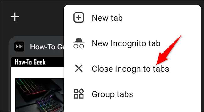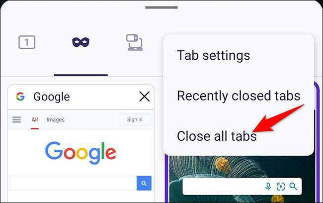 Üç noktalar menüsünde, "gizli sekmeleri kapat" üzerine dokunun.