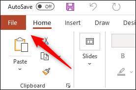 Slaytlarınızın kelimesini ve notlarınızı Windows 10'da almak için, PowerPoint sunumunu açın ve "Dosya" sekmesini tıklayın.