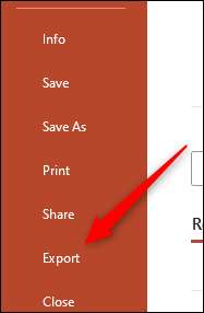"Dosya" sekmesine tıklayın ve sol bölmede, "İhracat" ı tıklayın.