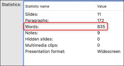 Mac için Microsoft PowerPoint kullanıyorsanız, slaytlarınızın ve notlarınızın kelime sayısını alabilirsiniz. Bununla birlikte, MAC'nin ihracat seçeneği, PowerPoint dosyasını bir Word DOC olarak dışa aktarmanıza izin vermez, bu nedenle sadece notlarınızın kelime sayısını almak için, onları kelimeye elle kopyalayıp yapıştırmanız gerekir.