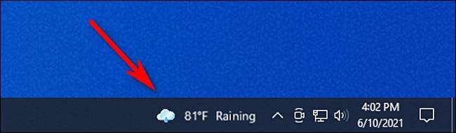 Hava widget, görev çubuğunuzda saatin yakınında görünecektir. bildirim Alanı .