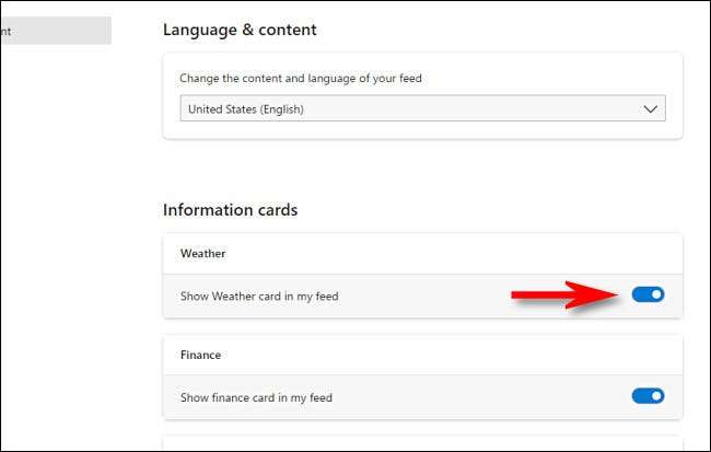 Widget yapılandırması kenar tarayıcısında açılacaktır. "Deneyim Ayarları" sayfasının "Bilgi Kartları" bölümünde, açmak için "Hava Durumu" yanındaki anahtarı tıklatın (mavi olacak ve anahtarın sağ tarafına bakacak şekilde).