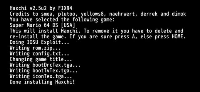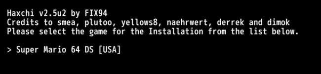 Bundan sonra, homebrew başlatıcısını tekrar yükleyebilir ve Haxchi yükleyicisini açabilirsiniz. Yükleyici, uyumlu bir oyun seçmenizi isteyen bir komut satırı istemidir. Oyunu seçmek için A düğmesine basın.