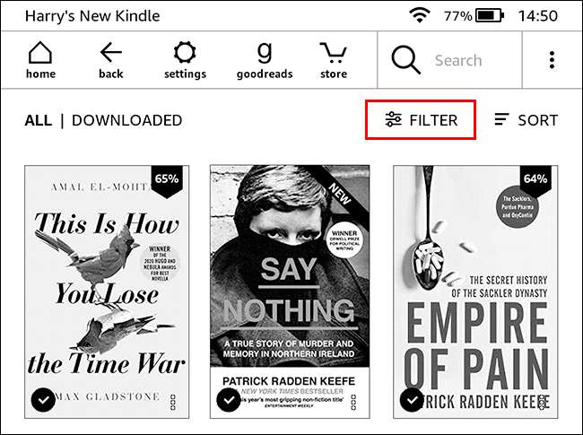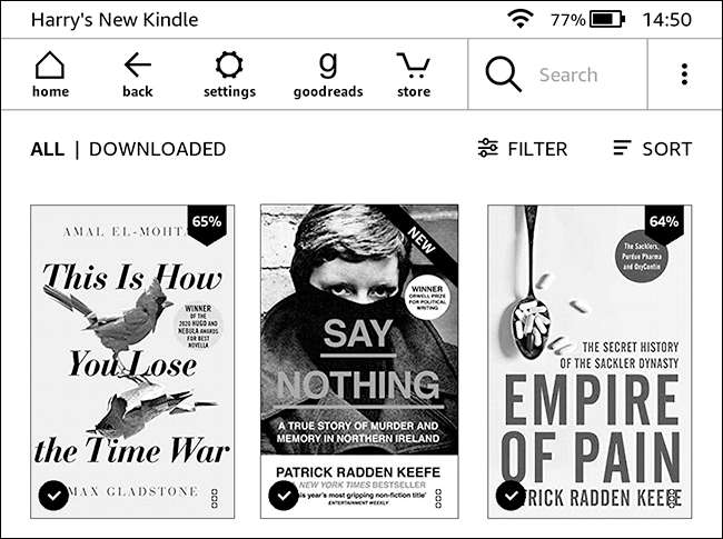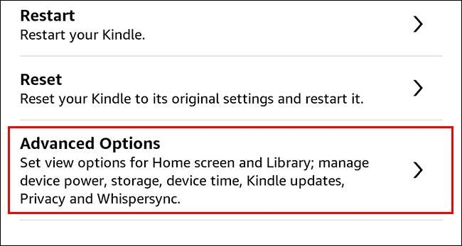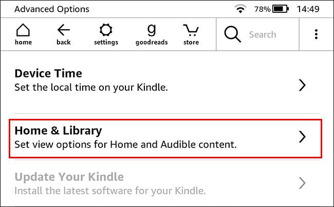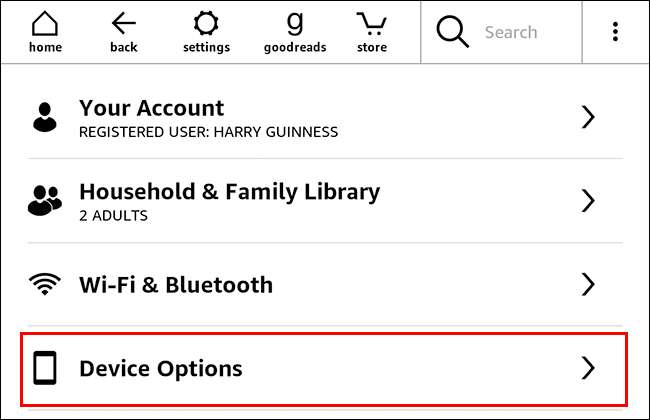 Kindle'ın ana ekranında, sağ üst köşedeki üç küçük noktaya dokunun.