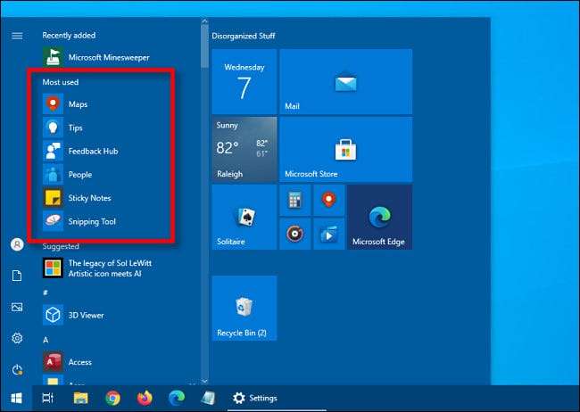 Etkinleştirildiğinde, Başlat menüsünün "en çok kullanılan" bölümü, en çok hangi uygulamaları kullandığınız uygulamaları takip eder ve bunları bir başlangıç menü listesinde görüntüler.