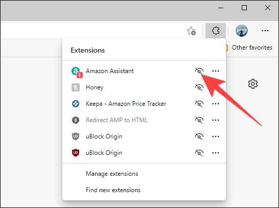 Araç çubuğunda göstermek için uzantı adının yanındaki göz açığı simgesini seçin.