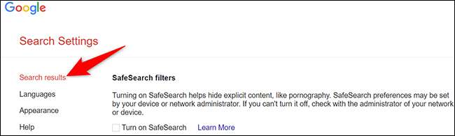 "Arama Ayarları" sayfasında, sol kenar çubuğundan, "Arama Sonuçları" seçeneğini seçin.