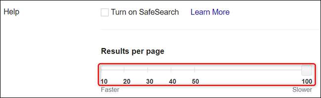 Sağ bölmede, "Sayfa başına sonuç" kaydırıcısını göreceksiniz. Sayfa başına sonuç sayısını artırmak için, bu kaydırıcıyı sağa sürükleyin. Kaydırıcının altında, Google'da etkinleştirebileceğiniz arama sonuçlarının sayısını göreceksiniz.