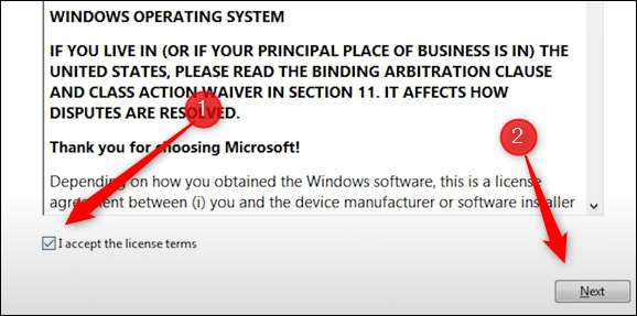 Bir sonraki ekranda, "Lisans Koşullarını Kabul Et" nin yanındaki kutuyu işaretleyin ve ardından "Sonraki."