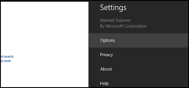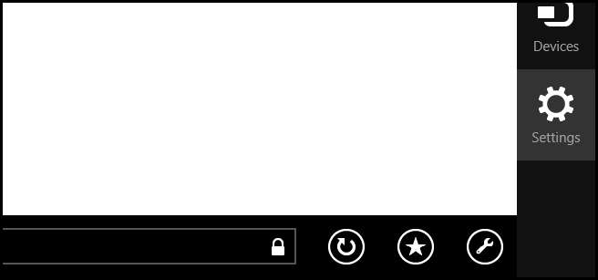 Başlangıç Ekranına geçin ve Internet Explorer 11'i başlatın. Açtıktan sonra, Charms çubuğunu getirmek için Win + C klavye kombinasyonuna basın, ardından Ayarlar Tılsımı'na tıklayın.