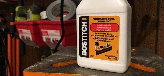 Çivi tabancaları gibi pnömatik aletler için, bu tür aletler için tasarlanmış bir yağlayıcı kullanılması önerilir. Neyse ki öyle aynı ucuz temel makine yağı olarak.