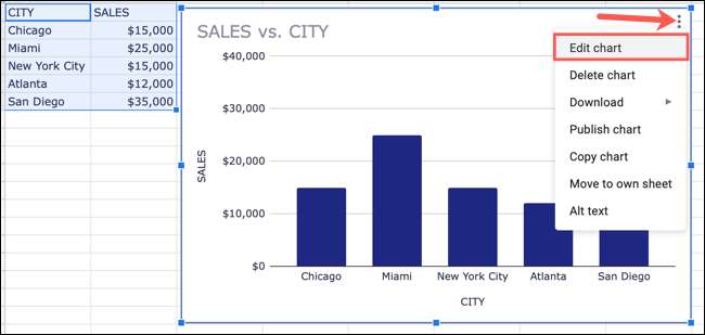 Grafiği seçin ve sağ üstte görüntülenen üç noktaya tıklayın. Grafik Düzenleyici kenar çubuğunu açmak için "Grafiği Düzenle" yi tıklayın.