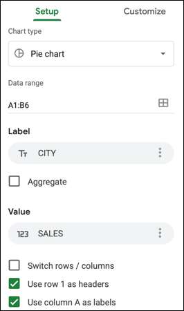 Daha sonra, veri aralığını ayarlamak, satırları ve sütunları değiştirmek için Kurulum sekmesindeki diğer seçenekleri kullanabilirsiniz veya ilk satırı başlık olarak kullanın.