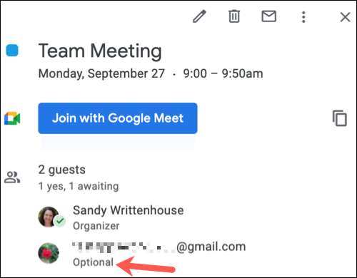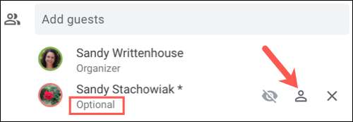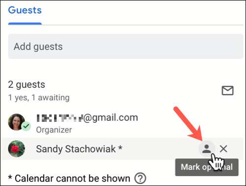Senin süpervizörün, bir iş arkadaşı olabilir Kim mevcut olmayabilir veya toplantıya ilgi duyan bir başkası. İsteğe bağlı olarak onları işaretleyerek, kendileri için katılmak veya katılmak isterlerse karar verebilirler. Ve konukların Google Takvim olayını veya daha sonra oluşturduğunuzda isteğe bağlı yapabilirsiniz.