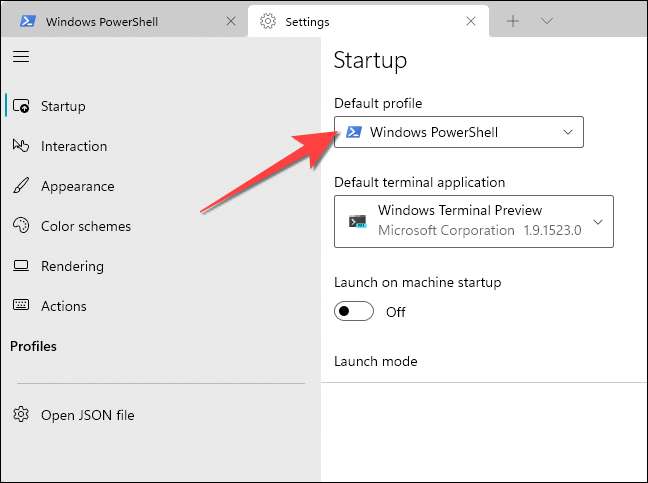 Varsayılan olarak, Windows Terminal uygulaması uygulamayı başlattığınızda Windows PowerShell profilini kullanır.