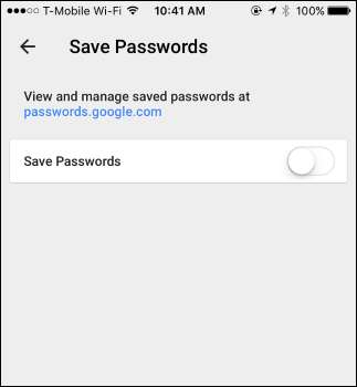 Android, iPhone veya iPad için Chrome'da menü> Ayarlar'ı tıklayın. Temel Bilgiler altındaki "Parolaları Kaydet" seçeneğine dokunun ve "Kapalı" olarak ayarlayın.