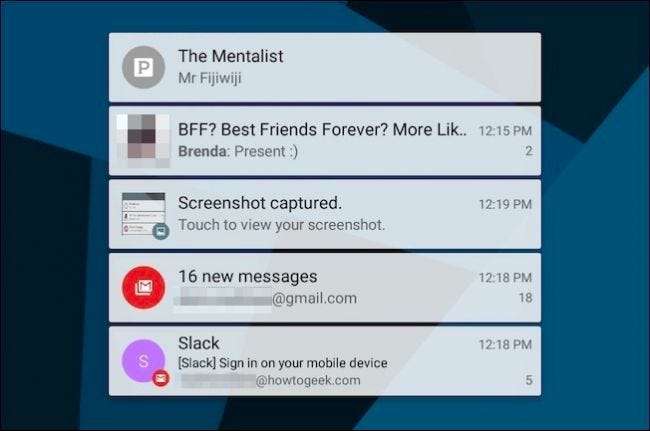 Lollipop'tan başlayarak, bildirimlere durum çubuğundan hâlâ erişilebilir, ancak bunlar aynı zamanda öne ve ortaya kilit ekranına taşındı. Uygulamayı açmak için belirli bir bildirime iki kez hafifçe dokunabilir (önce cihazınızın kilidini açmanız gerekir) veya eski açılır çekmecede yaptığınız gibi onları hızlıca kilit ekranından uzağa kaydırabilirsiniz.