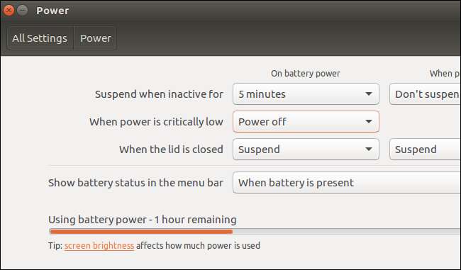 Örneğin, Linux dizüstü bilgisayarınıza askıya almasını söyleyin - bu, Linux'un uyku modu —Kullanmadığınızda daha hızlı. Bu seçeneği Linux masaüstü ayarlarınızda bulacaksınız. Örneğin, Sistem Ayarları> Ubuntu masaüstünü aç seçeneğine gidin.