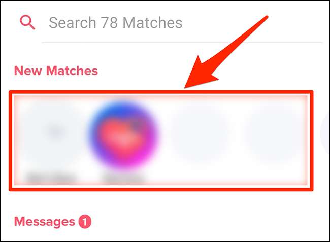 Tinder'ın sohbet ekranı açılacak. Burada, "Yeni Eşleşmeler" bölümünden, mesaj göndermek istediğiniz profile dokunun.