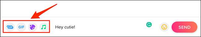 GIF göndermek için, Tinder'ın sohbet ekranındaki metin alanının yanındaki "GIF" seçeneğine dokunun.