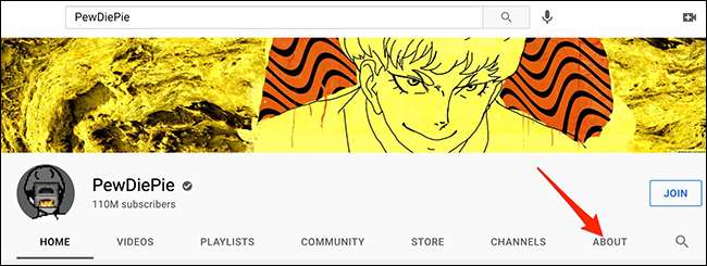 Açılan kanal sayfasında, başlık görüntüsünün altındaki Sekmeler çubuğundan (sayfanın üstündeki büyük resim), "Hakkında" sekmesini seçin.
