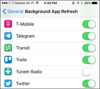 Hangi uygulamaların bunu yapabileceğini kontrol etmek için Ayarlar> Genel> Arka Planda Uygulama Yenileme'ye gidin. Arka planda bir uygulamanın yenilenmesini istemiyorsanız yanındaki geçişi devre dışı bırakın. Arka planda veri kullanan herhangi bir uygulama istemiyorsanız, ekranın üst kısmındaki "Arka Planda Uygulama Yenileme" kaydırıcısını tamamen devre dışı bırakın.