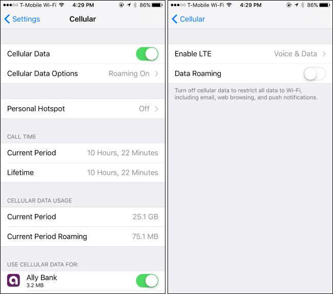 Ayrıca hücresel veriyi devre dışı bırakabilirsiniz. dolaşım buradan. "Hücresel Veri Seçenekleri" ne dokunun ve isterseniz "Veri Dolaşımı" nı devre dışı bırakmayı seçebilirsiniz. İPhone'unuz, seyahat ederken yüksek maliyetli dolaşım ağlarındaki verileri kullanmaz ve yalnızca operatörünüzün kendi ağına bağlı olduğunda verileri kullanır.
