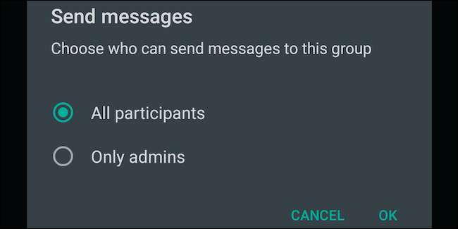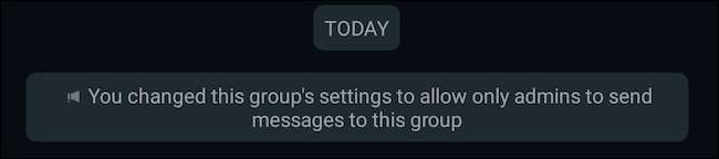 Bu tercihi güncelledikten sonra, WhatsApp, değişimin katılımcılarını bilgilendirmek için grup konuşmasında bir uyarı mesajı ekler. Üyeler için, alttaki normal kompozisyon metin alanı da "sadece yöneticiler mesaj gönderebilir" yazan sabit bir notla değiştirilecektir. Grup'un geçmiş mesajların geçmiş geçmişi etkilenmeyecek.