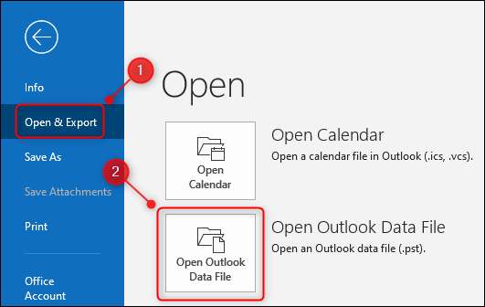 İlk olarak, Microsoft Office uygulamasını açın, "Dosya" ı açın ve ardından Aç ve AMP'yi seçin; İhracat ve GT; Outlook veri dosyasını açın.