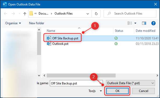 Açmak istediğiniz PST dosyasına göz atın ve "Tamam" i tıklayın.