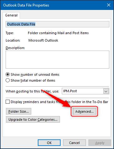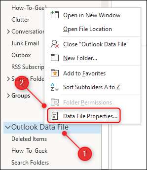 "Outlook Veri Dosyası" ı sağ tıklatın ve menüden "Veri Dosya Özellikleri" ini seçin.
