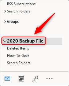 PST, navigasyon bölmesinin dibinde "Outlook veri dosyası" olarak görünecektir.