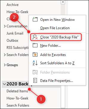 PST dosyasını artık görmeniz gerekmiyorsa, çıkarmak, onu eklemek kadar kolaydır. Dosya adını sağ tıklatın ve ardından "[Klasör Adı] 'ı kapatın.