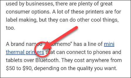 Sonra, sayfadaki herhangi bir yerde bir bağlantı bulun ve ardından bir açılır menü görünene kadar basılı tutun.