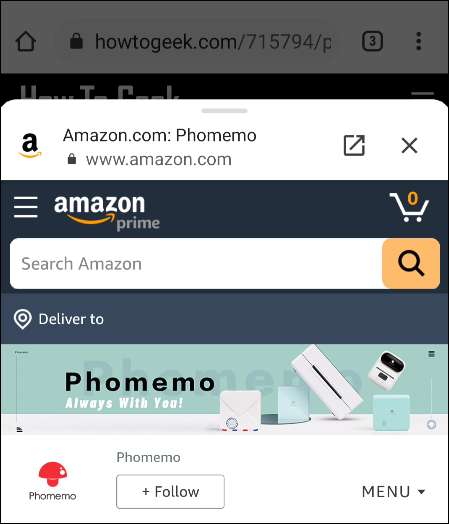 Sayfayı tam bir sekmeyle açmak istiyorsanız, Kutudaki Ok simgesine dokunun. Bu bir yaratacak Sekme grubu Orijinal sayfada bulundun.