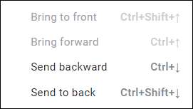 Her seçeneğin ayrıca bir klavye kısayoluna sahip olduğunu unutmayın. Görüntüyü ileriye doğru getirmek veya geri göndermek için sırasıyla Ctrl + Up veya Ctrl + Aşağı tuşlarına basın. Veya, sırasıyla Ctrl + Shift + Up veya Ctrl + Shift + Aşağı ile arkaya getirin.