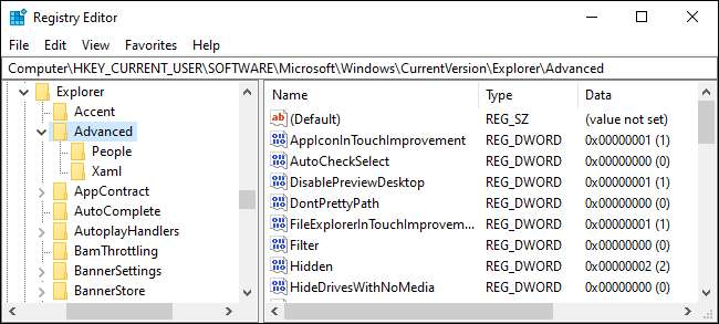 HKEY_CURRENT_USER \ Software \ Microsoft \ Windows \ CurrentVersion \ Explorer \ Advanced