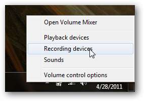 Audacity'yi ateşlemeden önce, ilgilenmemiz gereken bazı hızlı hazırlık çalışmalarımız var. Sistem tepsinize gidin ve ses simgenizi sağ tıklayın.