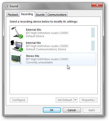 Ayarladıktan sonra Tamam'a basın ve ardından diğer ses girişiniz için de aynısını yapın. Sonunda, Stereo Mix mevcut değilse, tek yapmanız gereken onu varsayılan cihazınız olarak ayarlamaktır ve gitmenizde bir sakınca yoktur!