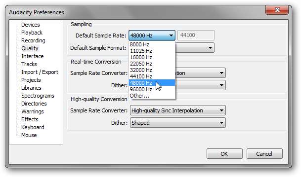 Varsayılan formatınızı ayarlayın. Çoğu şey için, 16 bit 44,1 kHz yeterli olmalıdır ve monoya geçmek istiyorsanız, yapmanız gereken yer burasıdır. Bu ayarlar daha sonra Audacity’nin varsayılan ayarlarıyla eşleşmelidir.