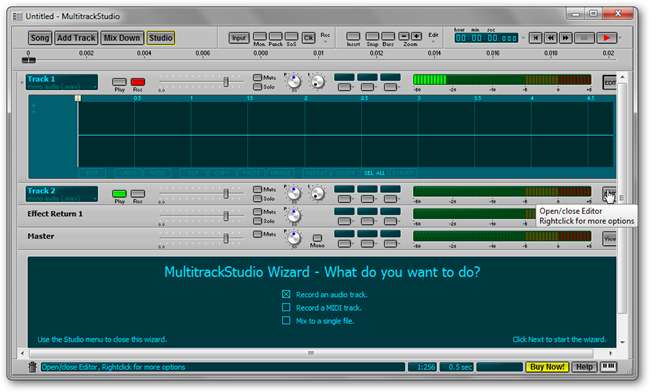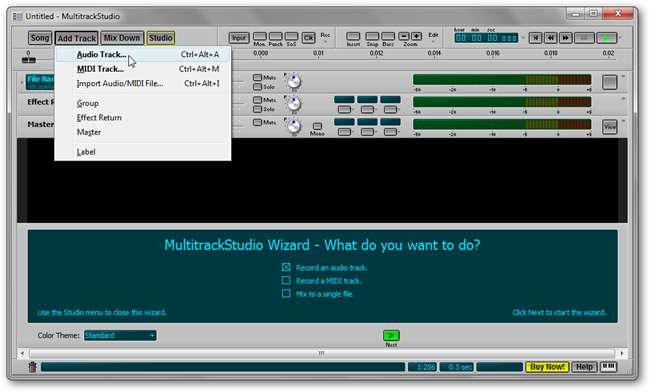 İndir Multitrack Studio demosu yükleyin ve başlatın. Parça Ekle düğmesini tıklayın ve Ses Parçası… öğesini seçin.