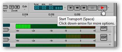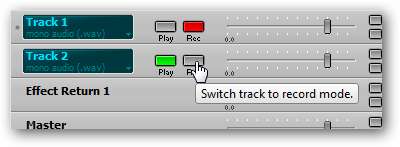 İkisi de kırmızıysa, gitmekte fayda var. Artık sese yanıt olarak her parçanın hareket ettiği seviyeleri görebileceksiniz. Sağ üst köşede, kaydetmek için kırmızı Oynat düğmesini tıklayın.