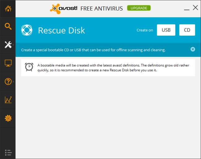 Başka bir deyişle, bilgisayarınıza virüs bulaşmışsa, ekstra önlemler almak isteyeceksiniz. Sırf antivirüsünüz bulduğu şeyi kaldırdı diye temiz olduğunu varsaymamalısınız. Muhtemelen iyi bir fikirdir bilgisayarınızı birden çok antivirüs ürünüyle tarayın maksimum algılama sağlamak için. Ayrıca, Windows dışında çalışan, önyüklenebilir bir virüsten koruma programı çalıştırmak isteyebilirsiniz. Bu tür önyüklenebilir antivirüs programları, kendilerini Windows'tan ve hatta Windows içinde çalışan yazılımlardan gizleyen rootkit'leri algılayabilecektir. dur! diğer birçok virüsten koruma programında olduğu gibi, tarama için hızlı bir şekilde önyüklenebilir bir CD veya USB sürücü oluşturma yeteneği sunar.