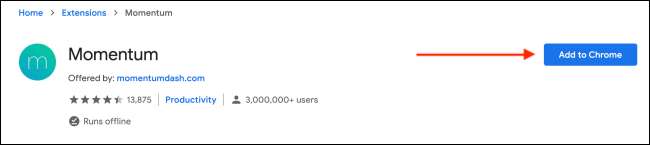 İlk olarak, aç Krom Uzatma Listesi Yüklemek istediğiniz başlangıç sayfası için. Bu örnek için basit ve güzel ile gidiyoruz Momentum uzantısı .