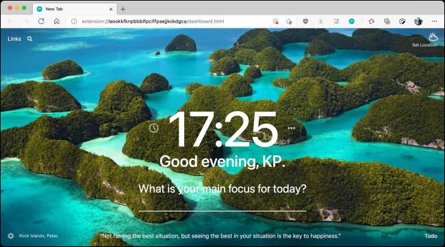 Artık başlangıç sayfasını özelleştirebilirsiniz. Bir dahaki sefere kenarı açtığınızda veya yeni bir sekmeye giderken, uzantıdan yeni başlangıç sayfası ile karşılanırsınız.