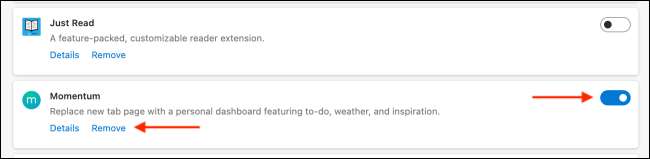 Burada, "momentum" uzantısının yanındaki geçişi tıklatın.