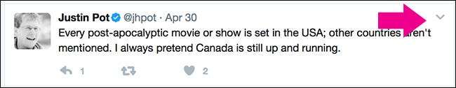 Tweetin sağ üst köşesindeki oka tıklayın veya dokunun.