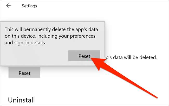 Uygulamanızın verilerinin silineceğini söyleyen bir istemini alacaksınız. Devam etmek için bu istemde "Reset" i tıklayın.