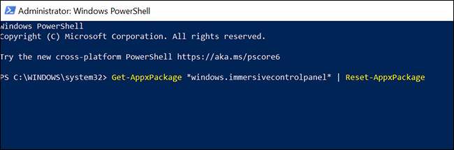 get-appxpackage * windows.immersivecontrolpanel * | Reset-appxPackage